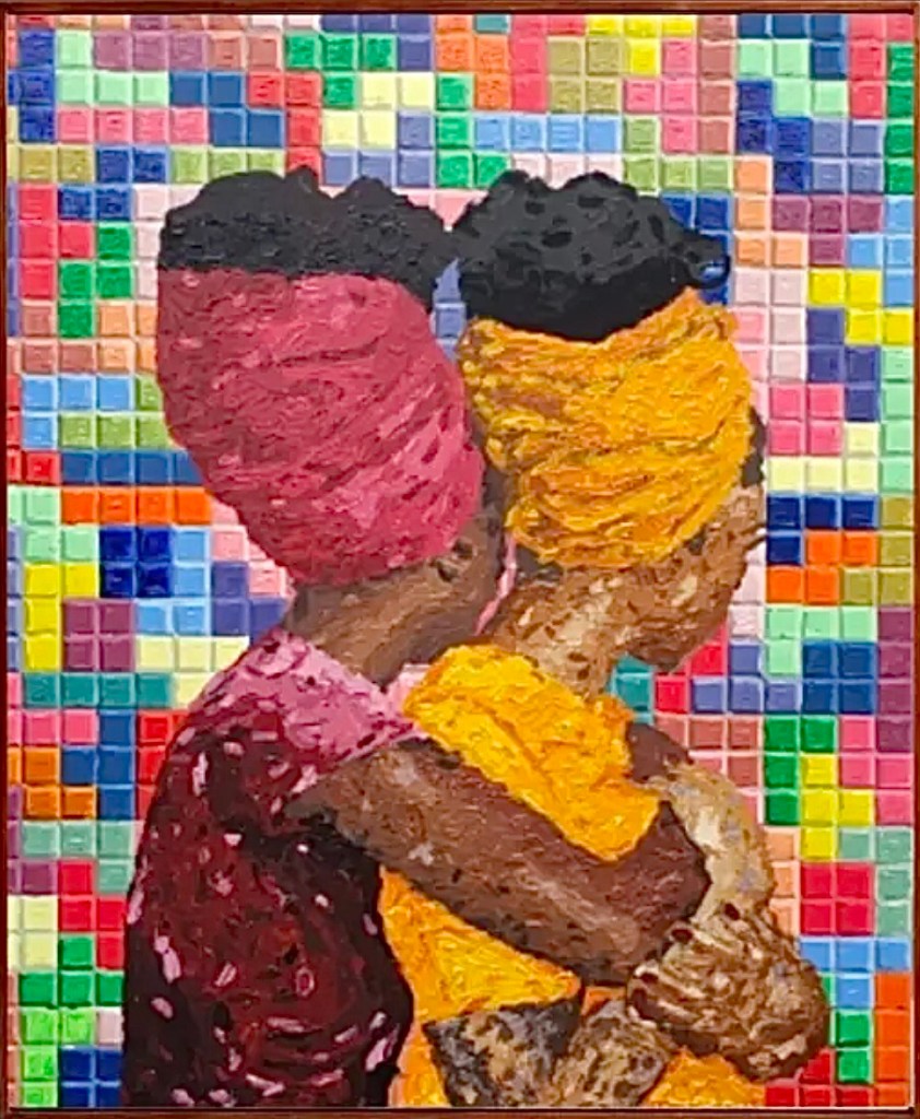 Speaking with Damilola, she told me that this work meant the consolidation of the relationships between the sisters of the same mother but a different father. It symbolizes, he told me, the kinship and consolidation of families. It is the call of the blood. But I have seen art in it, for example, by using partially pixelated images and combining the game known worldwide as Tetris with everything that represents parental consolidation, although it also claims its identity, in this case African. It is, without a doubt, part of Afrofuturism. It would be pretentious of me to make analogies with other famous painters. Although she is totally innovative, there is no doubt that she will go far. Well, he already exhibits in New York and in different countries. He has his innovative way of creating, using resources such as textile prints and always African images, a totally combative claim, without looking like anyone else.