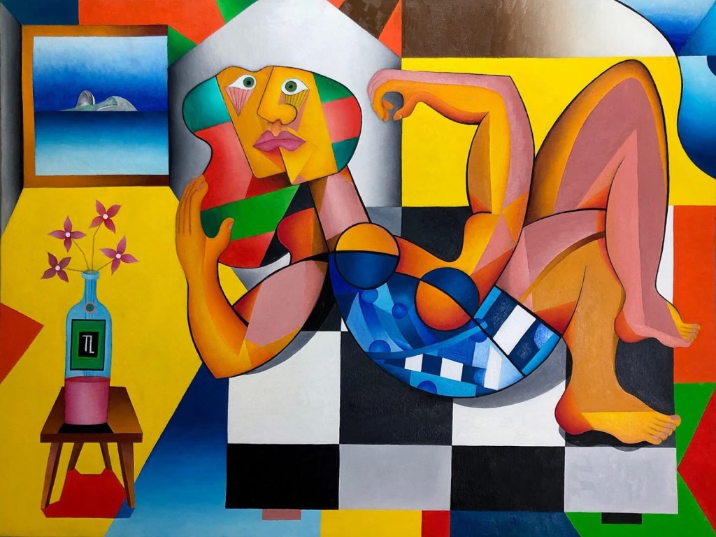 En la carrera del carioca Teixeira Leite Junior la pintura no surgió, como por arte de birlibirloque, de la noche a la mañana: fue, por el contrario, el desdoblamiento, una consecuencia natural de su formación profesional de designer. Pintor, pertenece a la familia de quienes, fieles a la lección de Cézanne, entienden la pintura como construcción, como un compromiso formal entre espacios positivos y negativos que dialogan, se complementan y se integran para generar, en la bidimensionalidad del cuadro, una estructura en la que nada se deja a la casualidad –o asume la apariencia de una forma orgánica, de un objeto o lo que sea. Para compensar ese rigor constructivo, que podría redundar, si se llevara al extremo, en una pintura demasiado cerebral, emplea una paleta multicolorida y de tonalidades vivísimas, gracias a la cual consigue realzar aquí un trecho de paisaje, allí una botella, más allá un instrumento musical. Pero no se engañen: los temas, para Teixeire Leite Junior, sólo sirven para disimular un trabajo antojadizo, responsable de la creación de puzles visuales capaces de seducir o fascinar al espectador más exigente, invitándolo a rehacer con los ojos laberintos de líneas que no obedecen a una única perspectiva, sino que, por el contrario, parten en todas las direcciones para generar espacios ambiguos en los que se funden y se confunden los planos, esto porque Teixeira Leite Junior sabe, al igual que Maurice Denis, que un cuadro, antes que ser un caballo de batalla, una mujer desnuda o cualquier otra anécdota, es esencialmente una superficie plana recubierta de colores dispuestos en un cierto orden. Incluso así, se puede detectar en el repertorio formal de Teixeira LeiteJunior la permanencia, en sus mesas de músico, en las figuras expuestas al aire libre o en interiores, así como en cualquier otra de sus composiciones, de ciertas constantes que en la práctica equivalen a una firma. Obsérvese, entre estas constantes que asumen casi la condición de símbolos, el florero, los suelos de ajedrez, capaces de crear en el espacio pictórico alternancias de fuerte impacto visual, y el perfil, al fondo, del Pão de Açucar, cuya forma, por evocar un seno de mujer, llevó al pintor y teórico francés AmedéeOzenfant a declarar Río de Janeiro una de las ciudades más femeninas del mundo.